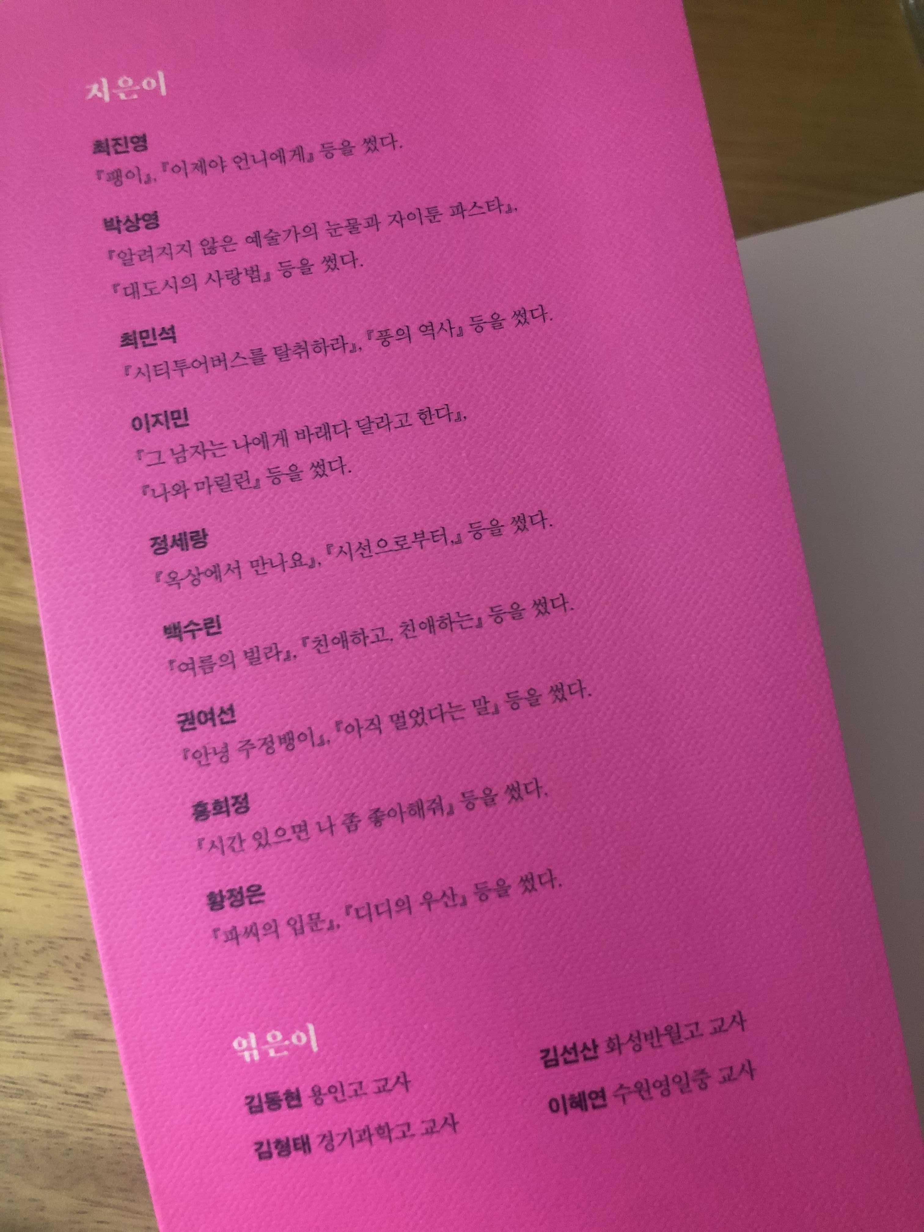 ‘햄릿 어떠세요?(박상영)’, ‘웨딩드레스 44(정세랑)’, ‘봄밤(권여선)’은 이미 읽었던 것이고, ‘괜찮아, 니 털쯤은(최민석)’과 ‘그 남자는 나에게 바래다 달라고 한다(이지민)’를 재밌게 읽었다.